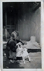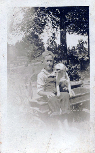 |   Clemar Lee Tankersley and Bob the dog in the front yard of Ipson and Tommie Lee's farm house. |
