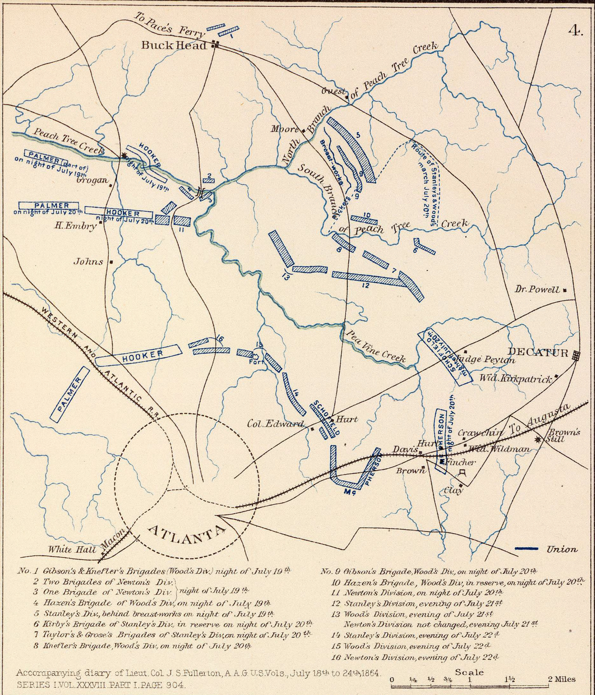 "Map Showing Battlefield of Peachtree Creek, Ga, Fought July 20, 1864," Plate CI, Map 7, Atlas of the War of the Rebellion, New York : Atlas Pub. Co., 1892. (Library of Congress, Geography and Map Division) |