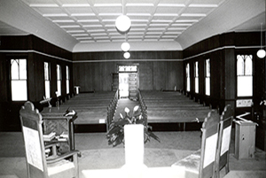 Few changes were made to the building after World War I. The 1920 and 1927 Sanborn maps indicate that it still had a wood-shingled roof and was heated by a stove. The building also had electric lights, although these may have been nothing more than bare bulbs suspended from the ceiling at two or three locations in the main coved ceiling. The building may even have had a bathroom in the room under the bell tower by that time.
