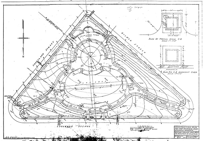 Figure 16. Pauley’s final “Plan for Joel Hurt Memorial Park,” probably completed in December 1939. (Georgia Department of Archives and History) |