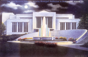 Figure 1. Post Card view of fountain at Hurt Park and the Municipal Auditorium, ca. 1941. (from Robert M. Craig, Atlanta Architecture, Art Deco to Modern Classic, 1929-1959) |