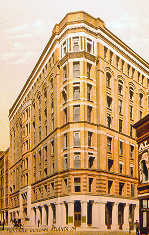 Hurt quickly became active in real estate and insurance, organizing the Atlanta Building and Loan Association in 1875, the first of its kind in the city. In 1884, he formed the East Atlanta Land Company to develop suburban real estate east of the city, on which he would create the city’s first garden suburb, Inman Park, and begin development of Druid Hills. He also built the city’s first steel-framed skyscraper, the old Equitable Building, which was completed in 1891. Connecting downtown to Inman Park would be the city’s first electric streetcar line, which began operation in August 1889 and came, as one reporter enthused, like “a benediction to drivers who have clattered over stones and dodged vehicles in town in a vain effort to get sweetness and light in their daily ride.” [2]