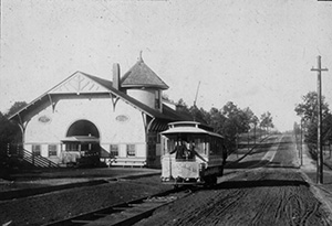 Named for the community that had grown up in the 1870s and ‘80s along the railroad in the vicinity of the Hurt cousins’ plantations, Edgewood Avenue was opened in September 1888, with great fanfare and with speeches by Gen. John B. Gordon, Henry Grady, and Joel Hurt himself. A year later, the city’s first electric street cars began their run out the double tracks on the avenue, taking fifteen minutes to make the two-mile trip from Five Points to the Trolley Barn in Inman Park. The streetcar line was an instant success. An observer described the new avenue in 1891: “Standing in the heart of the city . . . the eye sweeps eastward in an arrow line to the very brow of the fair suburban queen, Inman Park. . . The whole avenue from end to end has been planted in the choicest shade trees.” [5]