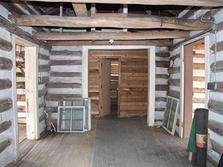 The original house consisted of the two rectangular log pens intersecting to give the house its T-shaped footprint, a needlessly complicated way of building compared to the traditional, and eminently practical, building of separate log pens, added side-by-side or separated by a dog trot. The small fireplace, multiple large window openings, and a difficult roof that also had dormers were all features not typically found in a nineteenth-century log house.