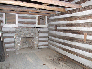 The design of the Fulton cabin incorporates some historic American log-building traditions, but a quick comparison with the nearby Levi Trentham Cabin (ca. 1830) shows the huge differences in design and craftsmanship between the two eras. Most obvious perhaps, the logs in the Trentham Cabin were carefully hewn and squared and put up using time-consuming but very strong half-dovetail joinery, leaving only narrow gaps between the logs. The Fulton cabin, in contrast, was built in the simplest way possible using peeled logs left in the round and put up with the shallowest of saddle notches. Traditionally, such construction was fit only for the most temporary of shelters or for housing livestock. Irregularly sawn lumber covered by concrete closed the large gaps between the logs. It is assumed that the expanded metal lath found in some locations is related to later repairs of this chinking.