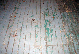 It is not clear that the two dormers are original features, although they probably are. Patterns of paint on the underside of the roof decking in both dormers indicate the use of salvaged boards, which could have been the result of roof repair.