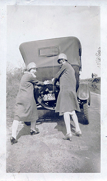Ipson Lee's first automobile was a 1915-1916 Model T Ford, the first of which rolled off the assembly line at Ford's Dearborn, Michigan, plant in 1908. By the time the last one was built in 1927, Ford had sold over fifteen million Model Ts, the first widely affordable automobile. Three hundred thousand were produced in 1915 and sold for $390 (the equivalent of about $10,000 today); the next year over half a million were built and the price dropped to $345. Production of the Model T Ford ended in May 1927; the first Model A was sold in December, and Ruby must have gotten hers shortly after that. When these images were made, her father had already sold the farm (in Novemberm 126, but they might not yet have moved into East Point. Ruby went to work as a switchboard operator at Western Union on Marietta Street in downtown Atlanta in 1928 or 1929, but with the streetcar lines a block and a half away from their new house at 215 Washington Avenue, there was no need to drive to work. |