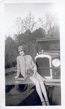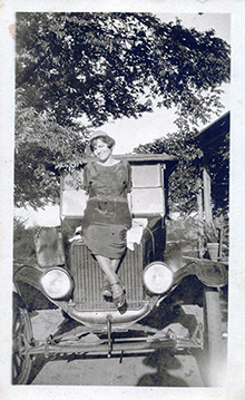 Ruby Lee in her Model A Ford, probably on Washington Road. |