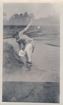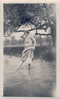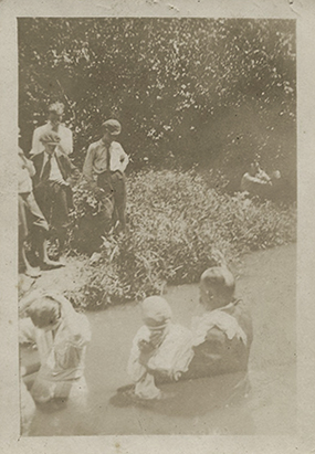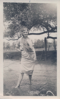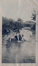 The South Fork of Camp Creek runs east to west across what were the pastures and fields on the south side of the Lee farm. Ruby apparently enjoyed wading in the creek with friends, and these photographs seem to document two or three such visits. These were likely taken a few hundred yards upstream from the Washington Road crossing, which was apparently not bridged until after World War I.