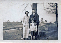 Iris and Melba, shaking hands with Bob at the south end of the house at the farm. |