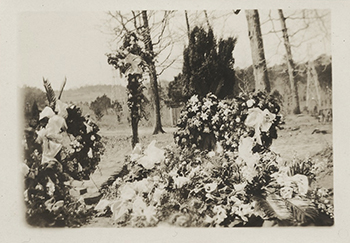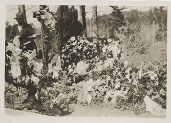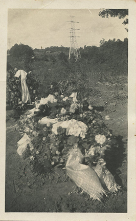 Two funerals, photographed but not identified. Landscape features, including the high-tension power lines in the background, place these burials at Mt. Olive Baptist Church cemetery. Ruby's sister, Clemar, died of typhoid fever on 8 August 1925 and was buried at Mt. Olive Exactly two years to the day later her husband Benjamin Tankersley died as well. Their orphaned son, Douglas B. Tankersley (1913–1969), was raised by his grandma Lee and aunt Ruby in East Point.